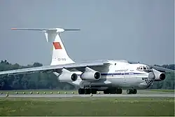 In 1964 Novozhilov was appointed first deputy general designer and tasked with overseeing the development and mass production of the Il-62. His success at this led to the award of the Lenin Prize in early 1970 to members of the Ilyushin bureau, including Novozhilov.[2] On 26 April 1971 Novozhilov was awarded the title of Hero of Socialist Labour after the completion of the state's eighth five-year plan.[2] In mid 1970 Sergey Ilyushin, then aged 77, announced his retirement and on 28 July, in the presence of Aviation Industry Minister Pyotr Vasilyevich Dementyev, Novozhilov was named as his successor and general designer of the Moscow bureau of the "Strela" works.[2] On 25 March the following year the Il-76, a military transport aircraft, began its test flights at Khodynka Aerodrome, overseen by Novozhilov with Sergei Ilyushin in attendance.[2] It became the most popular passenger and military transport aircraft of the Soviet Union.[1]
