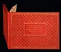 Through Baer’s earlier work in restoring ancient Aramaic letters for Ludwig Borchardt, an Egyptologist in Cairo, he made contact with Prof. Keith Seele[9] at the Chicago Oriental Institute who helped him find a position in the fine binding department of the Cuneo Press. Fine binding was a flourishing art at the time in Chicago with such binders as Leonard Mounteney, Alfred de Sauty, Harold Tribolet, Elisabeth Knerr, George Baer[10] and later William Anthony all active. Among these George Baer was particularly noted for his “bold and imaginative covers, with sensitive use of color”.[10] Baer worked at the Cuneo Press fine binding department from 1950 to 1971, as well as in his own workshop binding books for private clients and restoring books for libraries, especially the University of Minnesota Rare Book room.