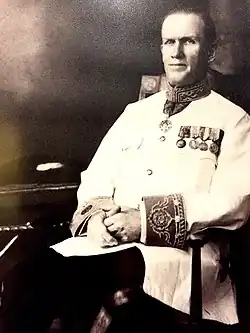 George Bradley McFarland (1866–1942), also known by the Thai noble title Phra Ach Vidyagama (Thai: พระอาจวิทยาคม, RTGS: Phra Atwitthayakhom), was a Siam-born American physician who was instrumental in establishing modern medical education in Thailand. A son of Presbyterian missionary Samuel G. McFarland, he was born and grew up in Siam (as Thailand was then known) and studied medicine and dentistry in the United States, before returning to head the newly established Royal Medical College at Siriraj Hospital (now the Faculty of Medicine Siriraj Hospital at Mahidol University), where he taught for 35 years before retiring. He wrote the first Thai medical textbooks, compiled a Thai–English dictionary, and popularized the use of Thai-language typewriters.[1][2]
