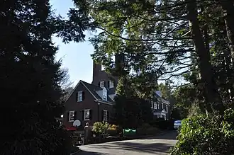 The George R. Minot House is a National Historic Landmark in Brookline, Massachusetts. It is an architecturally undistinguished vernacular Colonial Revival brick house, probably built in the 1920s. The 2+12-story main block has an attached 1+12-story ell, and two end chimneys. The hip roof is pierced by gabled dormers, and a pedimented portico shelters the front entry.[2]
