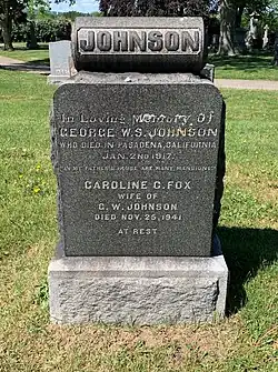 Grave of poet, George Washington Johnson, and his third wife, Caroline Fox, in the Hamilton Cemetery, Hamilton, Ontario, Canada