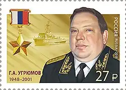 German Alexeyevich Ugryumov (Russian: Герман Алексеевич Угрюмов; 10 October 1948, Astrakhan, Soviet Union – 31 May 2001, Khankala, Chechnya, Russia) was a Soviet and Russian navy and security services official. During his childhood he lived in Chelyabinsk Oblast.[1]