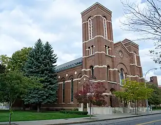 German United Evangelical Church Complex, also known as Salem Evangelical Church (1921), Salem Evangelical and Reformed Church (1943), and Salem United Church of Christ (1957), is a historic Evangelical and Reformed church complex located at Rochester in Monroe County, New York. The complex includes the original church structure (1874) with attached wing (1895) and the later parish house and church school (1923).[2]