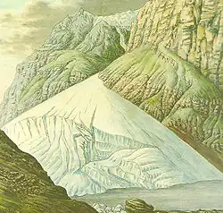 The ice cone which obstructed the valley in 1818 (by Arnold Escher von der Linth)