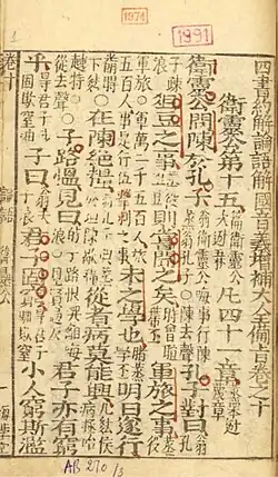 Giải âm (chữ Hán: 解音) refers to Literary Vietnamese translations of texts originally written in Literary Chinese.[1] These translations encompass a wide spectrum, ranging from brief glosses that explain individual terms or phrases to comprehensive translations that adapt entire texts for a Vietnamese reader. Works translated into Vietnamese include Chinese classics,[2] such as the Analects (Luận ngữ uớc giải; 論語約解),[3] as well as native Vietnamese Classical Chinese literature, such as Truyền kỳ mạn lục (Tân biên Truyền kỳ mạn lục tăng bổ giải âm tập chú; 新編傳奇漫錄增補解音集註).[4]