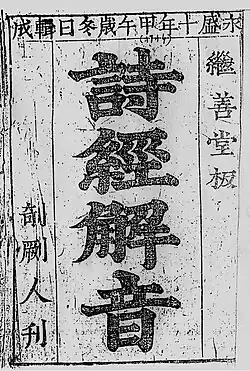 The book cover of Thi kinh giải âm 詩經解音 (1714).