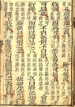 The earliest extant Vietnamese text with bilingual translation is Phật thuyết đại báo phụ mẫu ân trọng kinh (佛說大報父母恩重經), dated to the fifteenth century.[7] This text features an Old Vietnamese translation alongside the original Classical Chinese.[8] The Vietnamese translation uses obsolete vocabulary and linguistic features that were characteristic of the period, providing valuable insight into the development of the Vietnamese language at the time.