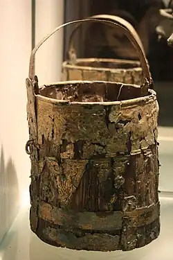 Placing wooden buckets in burials is an ancient practice that has interested scientists since the 19th century. It is attested at the end of the Bronze Age and developed at the end of the La Tène period.[43]