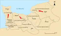 In the 5th century, the northern part of Gaul rejected imperial authority. There are few sources, but it may have been linked to Constantine III[10] being overthrown. The usurper was killed in Arles in 411. Troops on the Rhine withdrew during this troubled period. They were protecting the English Channel but could not prevent new arrivals.[10] The central power hunted down supporters of the usurper or those backing the "separatist movement." It regained a foothold and reorganized the defenses around 411-416. However, the Armorican provinces remained in turmoil throughout the century. Their rallying to Clovis could be seen as the religious elites' rallying to a Catholic Christian leader in a context marked by Arianism, particularly among the Visigoths.[10]
