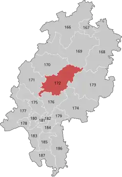 Gießen is an electoral constituency (German: Wahlkreis) represented in the Bundestag. It elects one member via first-past-the-post voting. Under the current constituency numbering system, it is designated as constituency 172. It is located in central Hesse, comprising the Gießen district and the northwestern part of the Vogelsbergkreis district.[1]