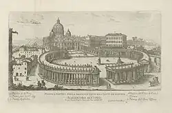 Falda was sent as a boy to Rome, to work in the studio of Bernini, and his draughtsmanship caught the eye of the publisher Giovanni Giacomo de Rossi.[2][3] He engraved for Le fontane di Roma (Fountains in Rome)[4] and for Palazzi di Roma (Palaces of Rome).[5] The former books were expanded after Falda's death with engravings by Francesco Venturini.[5] The latter was published in 1655 in collaboration with Pietro Ferrerio. He is sometimes known as 'Falda da Valduggia' because of his birthplace.