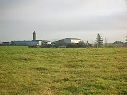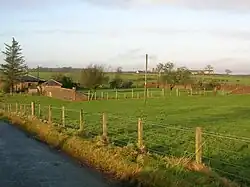 View of the farm, tower and lodges from near Torranyard