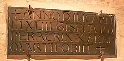 Gisela was known for "her most becoming appearance".[19][20] Gisela's tomb in Speyer was opened in 1900 and her mummified body was found to be 172 cm (5 ft 8 in) tall, with long blond hair.[21]
