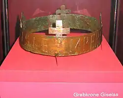 Burial crown of Gisela. The inscription reads: GISLE IMPERATRIX