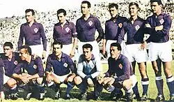 Sarti (crouched, second from right) with Fiorentina scudettata in the 1955–56 season