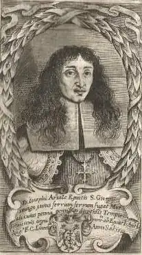 Giuseppe Artale was born at Catania, in 1628.[2][1] He was descended from an ancient Aragonese family.[1] At fifteen, he made a hurried departure from his native city, where he had killed a rival in a duel.[3] He entered the army soon after, and rendered himself conspicuous by his bravery. For a time, he served as Captain of the Guard to the palatine Ernest of Brunswick-Lüneburg, and was highly esteemed by the emperor Leopold. He distinguished himself in the Cretan War against the Ottoman Empire, and was made a knight of the Constantinian Order of Saint George, with permission to add the imperial eagle, or Double-headed eagle, to his family arms.[4] As a swordsman he was unrivalled, and was commonly known by the appellation of the sanguinary knight, conferred upon him for his success as a well-practised duelist. He died at Naples in 1679, worn out by excess.