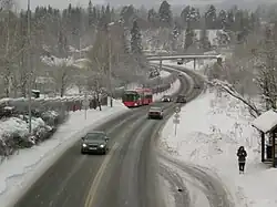 Since 1924 Gjønnes is served by the Oslo Metro station Gjønnes.[4] The district is also served by lines 42, 142, 732 and 735 of Ruter's bus network. Norwegian National Road 160 passes through the area, with the Bekkestua Tunnel having its western exit right by the Metro station.