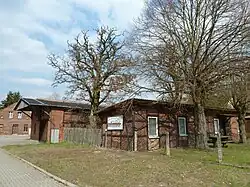 The dismantled tracks of the narrow-gauge railway towards Pritzwalk and Lindenberg were located north of the tracks of the main line. To the east of the present federal highway on the main line towards Lindenberg was the platform with a small entrance building,[11] which is now (as of 2012) used as a local club. The facilities for freight and for changing locomotives were west of the highway next to the freight facilities of the main line. There was no track connection to the narrow-gauge tracks or to the line to Havelberg, which was also rebuilt to narrow gauge after the Second World War. Vehicles were transported by standard-gauge transfer wagons between the two parts of the station.[12]