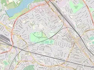 Gladstone Park is situated in the Dollis Hill area of north-west London. It is about 35 hectares (86 acres) in area.[1][2]