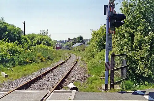 ![]() The site of the station, looking west towards Pantyfynnon, in 1994 | |||||