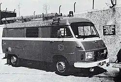In 1974, Glasgow Salvage Corps received a custom long-wheelbase van from Mercedes-Benz. This was a 'First Aid/Strike DCU' with the registration number JGD 277N. The bodywork of the van was produced by Aiken of Linlithgow Ltd and had a large water tank underneath the false floor inside.