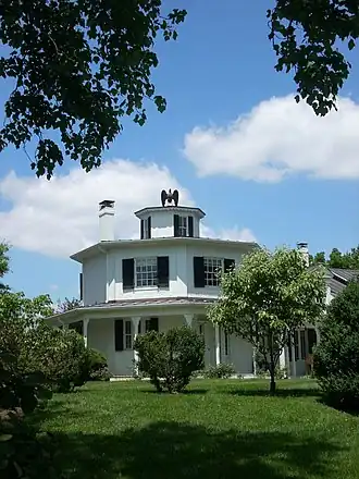 The Glebe House, built in 1854–1857, is a historic house with an octagon-shaped wing in Arlington County, Virginia.[3] The Northern Virginia Conservation Trust holds a conservation easement to help protect and preserve it.[4] The name of the house comes from the property's history as a glebe, an area of land within an ecclesiastical parish used to support a parish priest.[5] In this case, the Church of England established the glebe before the American Revolutionary War.[5]