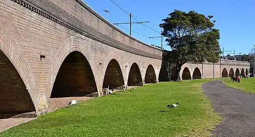 The Glebe Viaducts (Jubilee Park/Wentworth Park) are an excellent representative of brick arch construction and compares to the brick arch viaduct on the Lavender Bay railway line.[1]