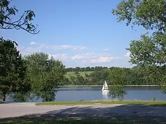 Glenn Cunningham Lake is a 390-acre (1.6 km2) reservoir located in Omaha, Nebraska, United States. The lake is located along 96th Street with entrances at State Highway 36, State Street, 96th Street and Rainwood Road. The lake is a part of Little Papillion Creek, which is part of the Papillion Creek watershed.