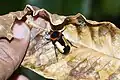 There is a slight variation in beetles found from Indian subregion with Sri Lanka. The form in Himalayan region is small and narrow with small golden triangular elytral patches. Whereas the Sri Lankan form is usually larger and broader with the large golden elytral patches. Third instar has a cylindrical, dull whitish body. Average length of the third instar is about length 13 mm, with a 3mm width head capsule. Spiracles distinct, with a C-shaped yellowish brown cranium. Antenna has four antennomeres.[3]