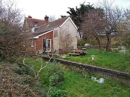 ![]() The old station in 2017, now a private residence. The platform is still clearly visible, with a modern extension built over part of it. | |||||