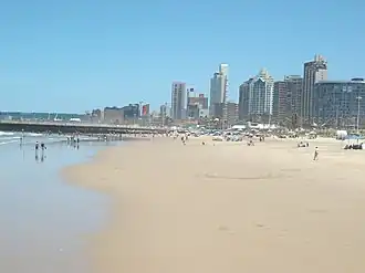 The Golden Mile (or, colloquially, "The Mile") is the popular stretch of beachfront in the city of Durban, KwaZulu-Natal, South Africa, including the promenade that runs along with it.[1] It runs roughly from uShaka Beach (where the uShaka Marine World is located) in Point Waterfront to Suncoast Casino and Entertainment World in the north and now includes a route directly to Moses Mabhida Stadium. It abuts the central business district of the city to its west.
