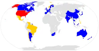 | America (11) | Europe (27) | Oceania (3) | Asia (16) | Africa (3) |