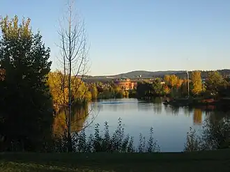 Scenic view of Lake Arthur and Gonzaga University School of Law captured in October