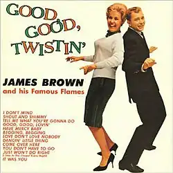 Good, Good, Twistin' is a compilation album by American musician James Brown and The Famous Flames. It consists of tracks from his first four studio albums, in addition to his recent single "Shout and Shimmy" and the previously unreleased "Have Mercy Baby". The album was released in 1962, by King Records.[1][2] The album was later reissued under the title Shout and Shimmy.[3] While some songs feature the original Flames, the longest lasting Flames lineup (Bobby Byrd, Bobby Bennett, and Lloyd Stallworth) are featured on four songs: "Shout and Shimmy", (and its B-side "Come Over Here" ), "Good, Good, Lovin'", and "I Don't Mind".