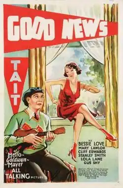 Good News is a 1930 American pre-Code musical film directed by Nick Grinde, and starring Bessie Love, Cliff Edwards, and Penny Singleton. The film was shot in black-and-white, although the finale was in multicolor.