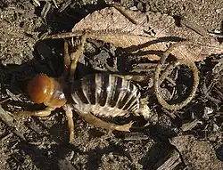 | Gordius sp. emerging from a Stenopelmatus cricket | |