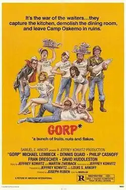 Gorp is a 1980 American comedy film starring Michael Lembeck and Dennis Quaid, and featuring early acting work of Rosanna Arquette and Fran Drescher in supporting roles. Directed by Joseph Ruben, with both story and screenplay by Jeffrey Konvitz and A. Martin Zweiback, the film follows in the tradition of the 1978 fraternity comedy National Lampoon's Animal House, and the 1979 summer camp comedy film Meatballs. Gorp was the penultimate film released by American International Pictures, before How to Beat the High Cost of Living two months later.
