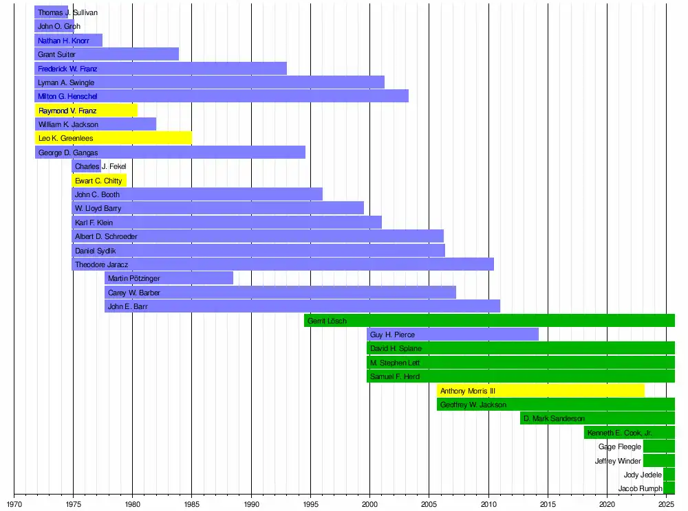 86. ^ a b c Two New Members of the Governing Body, The Watchtower, October 2025.