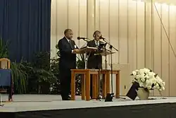 The Governing Body functions by means of its six committees, which carry out various administrative functions.[50] Each committee is assisted by "helpers", who do not necessarily profess to be "anointed". Governing Body meetings are held weekly in closed session.[50] According to Raymond Franz, decisions of the body were required to be unanimous until 1975, after which a two-thirds majority of the full body was required, regardless of the number present.[51][52]