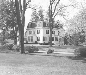The site that is now the Togus VA facility is the first veterans facility established by the United States. It was established by an act of Congress in 1866, to provide a space for "any worthy soldier" who was "suffering such a degree of disability" so as to need such a facility.[3] The property acquired by the government was a summer resort, capitalizing on local mineral springs, that had gone bankrupt in the war. This facility opened in 1866, and its main buildings were destroyed or damaged by fire in 1868.[4] The government embarked on a major building campaign in 1868–69, of which the residence of the facility's governor (now director) is now the only surviving building.[3] The buildings of this building campaign were designed by the Boston architect Benjamin F. Dwight, and the contractor was Nathaniel Head of Hooksett, New Hampshire.[5]