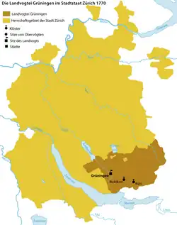 5. ^ Grüningen Vogtei in German, French and Italian in the online Historical Dictionary of Switzerland.
