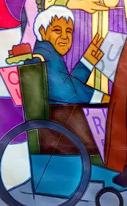 • A portrait by Mike Alewitz of Grace Lee Boggs in his "We Follow The Path Less Traveled The City at The Crossroads of History" mural series.