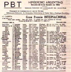 - ^ "Argentine Racing is Prosperous". Daily Racing Form. 1920-09-21. p. 2.