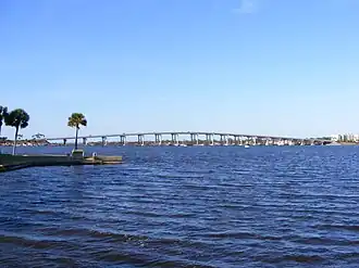 The Granada Bridge is a high-clearance bridge that spans the Halifax River and Intracoastal Waterway, linking the mainland and beach peninsula parts of Ormond Beach, Volusia County, Florida. Granada Bridge carries four lanes of State Road 40 and Granada Blvd.[1] The Casements, along with City Hall Plaza, Fortunato Park, and Riverbridge Park reside at the four corners of Ormond Beach's Granada Bridge,[2] which give their collective name to the annual "Four Corners Festival" in Ormond Beach.[3]