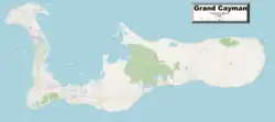 Grand Cayman encompasses 76% of the territory's entire land mass. The island is approximately 22 miles (35 km) long with its widest point being 8 miles (13 km) wide.[2] The elevation ranges from sea level at the beaches to 60 feet (18 m) above sea level on the North Side's Mastic Trail.[3][4] Unlike many other Caribbean islands, Grand Cayman is for the most part, flat. This allows for more space to build as the island's population grows.