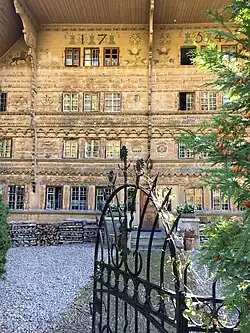 The Grand Chalet is considered one of the largest wooden houses ever built in the Alps. In one chronicle it is described as a castle with a turtle shell. The painter Balthus spent the last decades of his life in the Grand Chalet.[5][6][7]