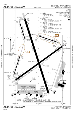 Grant County International Airport (IATA: MWH, ICAO: KMWH, FAA LID: MWH) is a public use airport located six miles (10 km) northwest of the central business district of Moses Lake in Grant County, Washington, United States. Formerly a military facility, the airport is owned by the Port of Moses Lake,[1] and its 13,500-foot (4,110 m) runway is the 17th longest in the U.S.