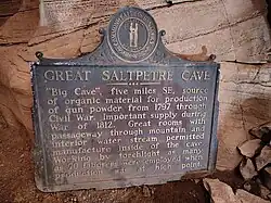 The Great Saltpetre Cave is a notable limestone cave located in Rockcastle County in southeastern Kentucky. During the War of 1812, it served as an important source of saltpeter, a vital component of gunpowder Also known as black powder.