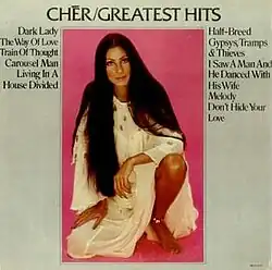 Greatest Hits is the third greatest hits compilation by American singer-actress Cher, released in October 1974 by MCA Records. The album was released to close Cher's contract with MCA, her record company since 1971. This release follows the greatest hits albums Golden Greats (1968) and Superpack (1972). The album peaked at 152 on the Billboard 200 chart.[4]