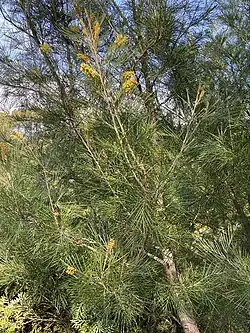 Grevillea hodgei, commonly known as the Coochin Hills grevillea,[4] is a species of flowering plant in the family Proteaceae and is endemic to a restricted area of Queensland. It is an erect shrub with deeply divided leaves with erect, linear leaflets, and clusters of hairy, cream-coloured flowers.